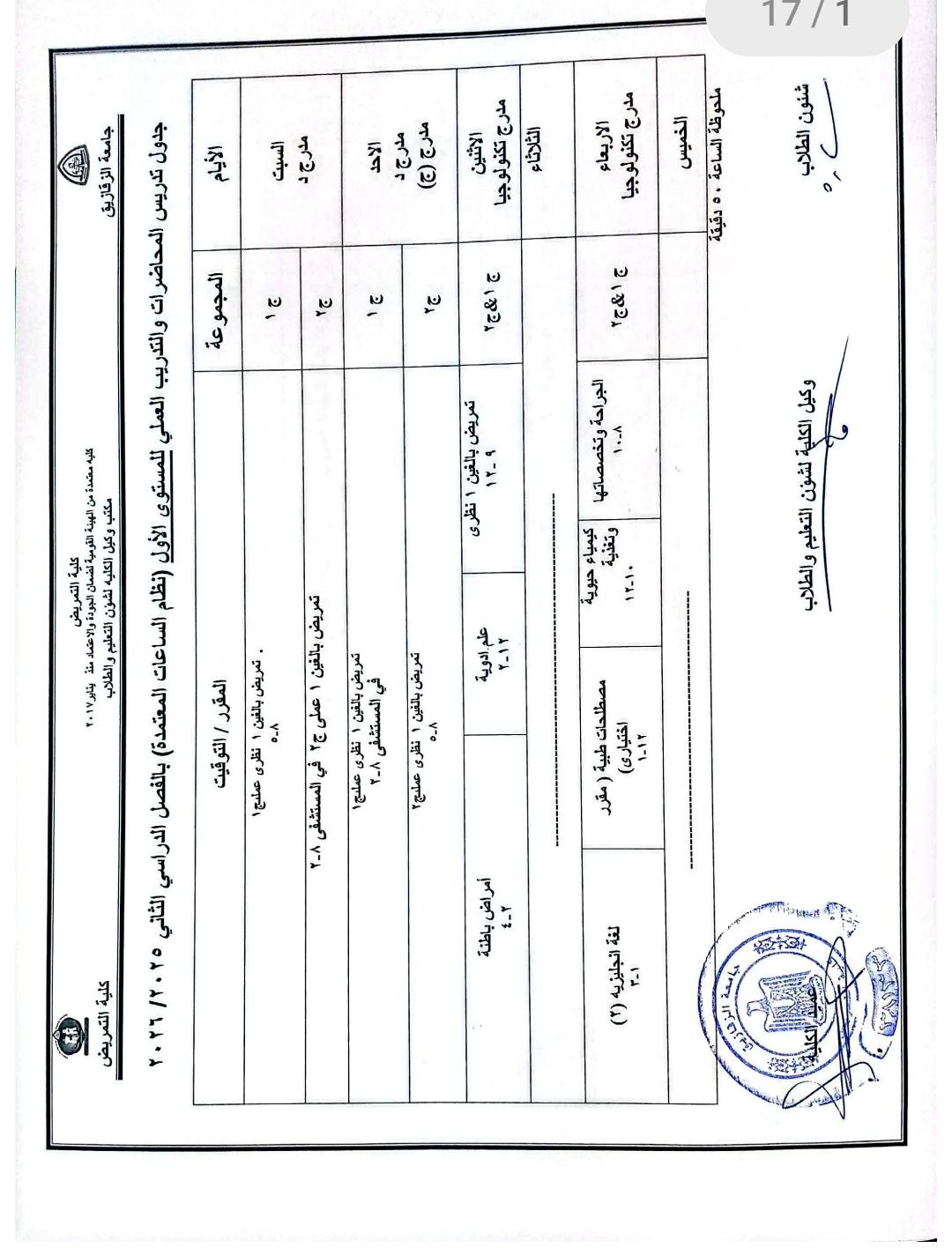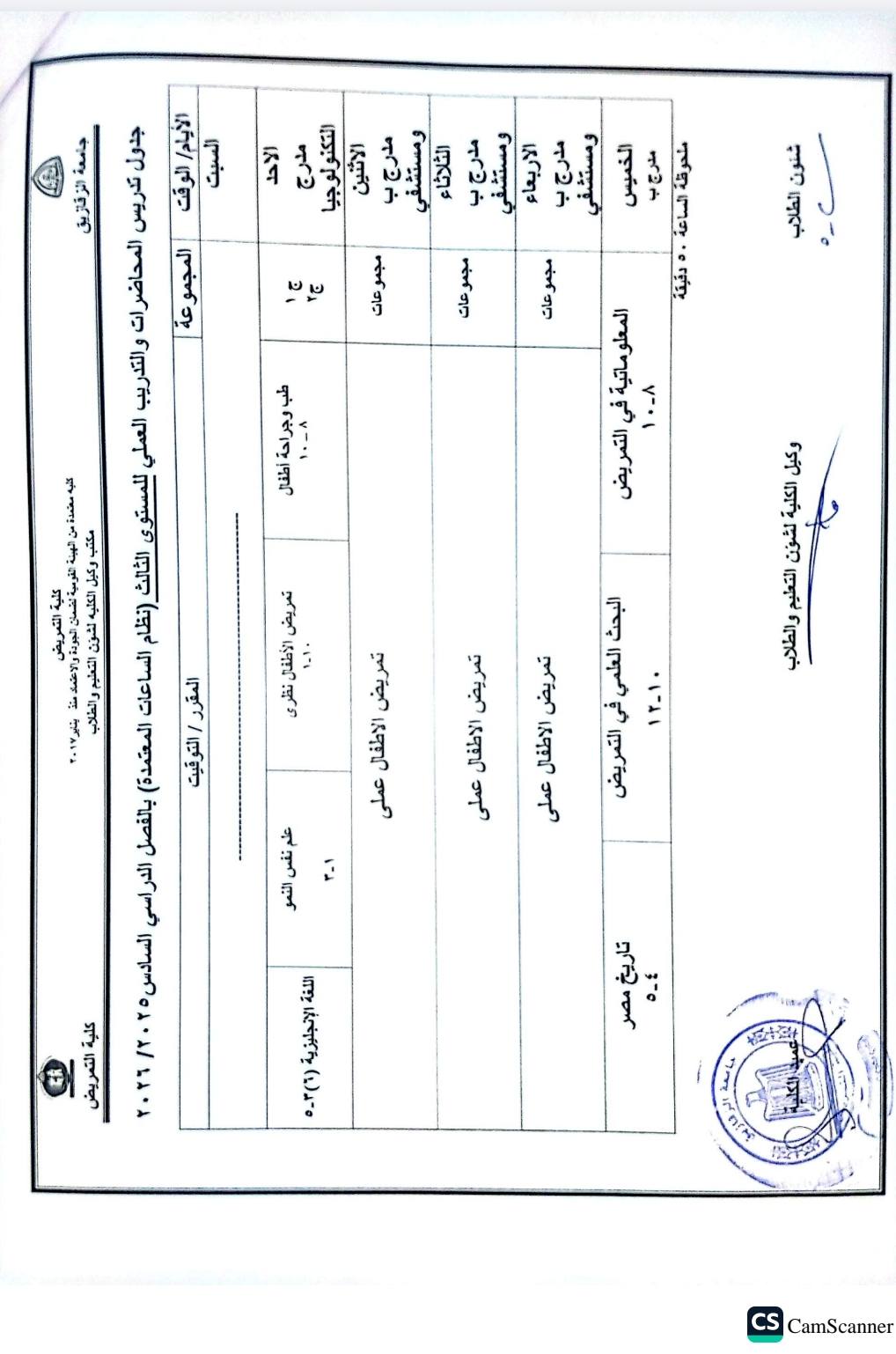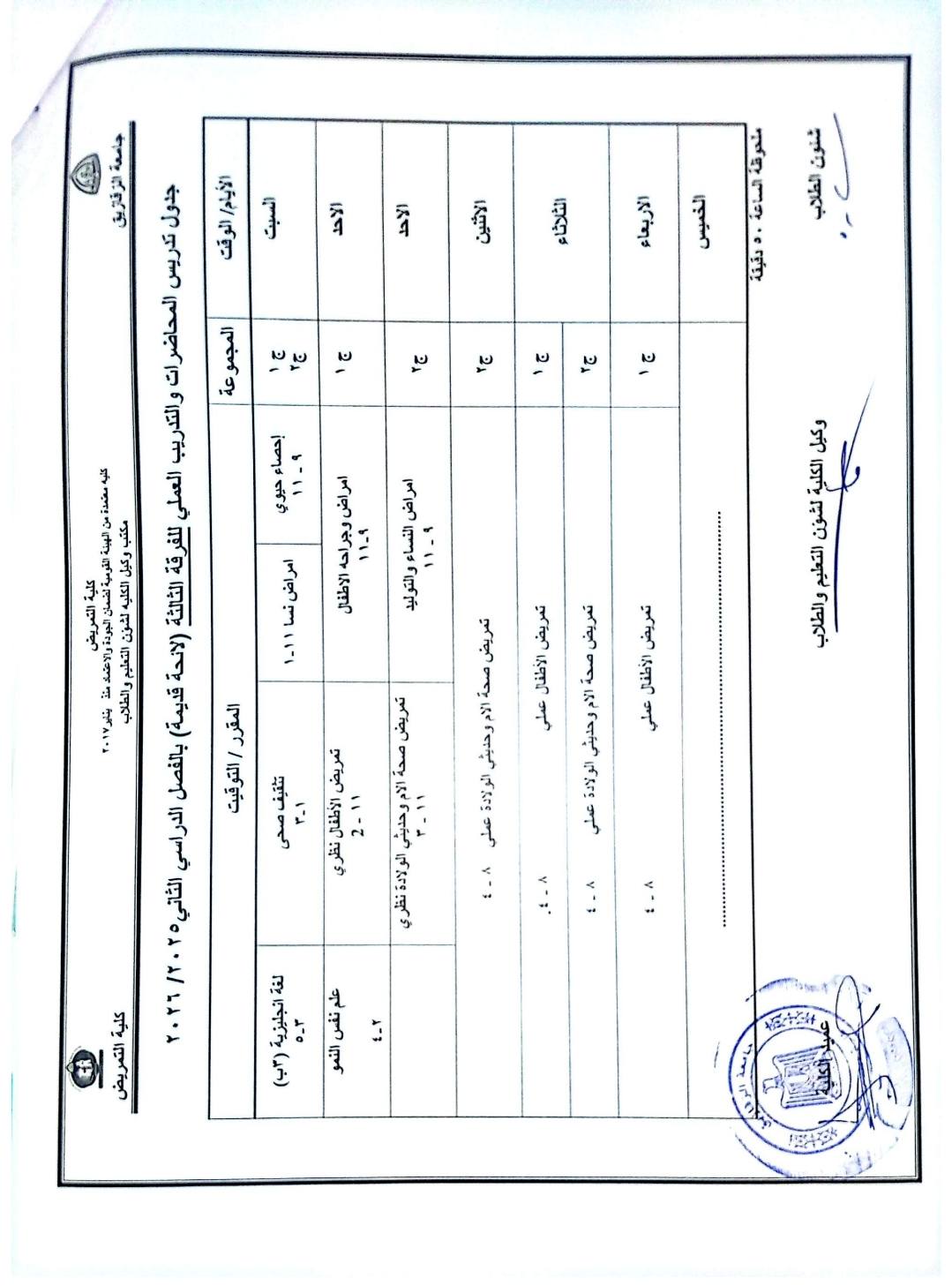 جدول محاضرات شئون تعليم (2025-2026)