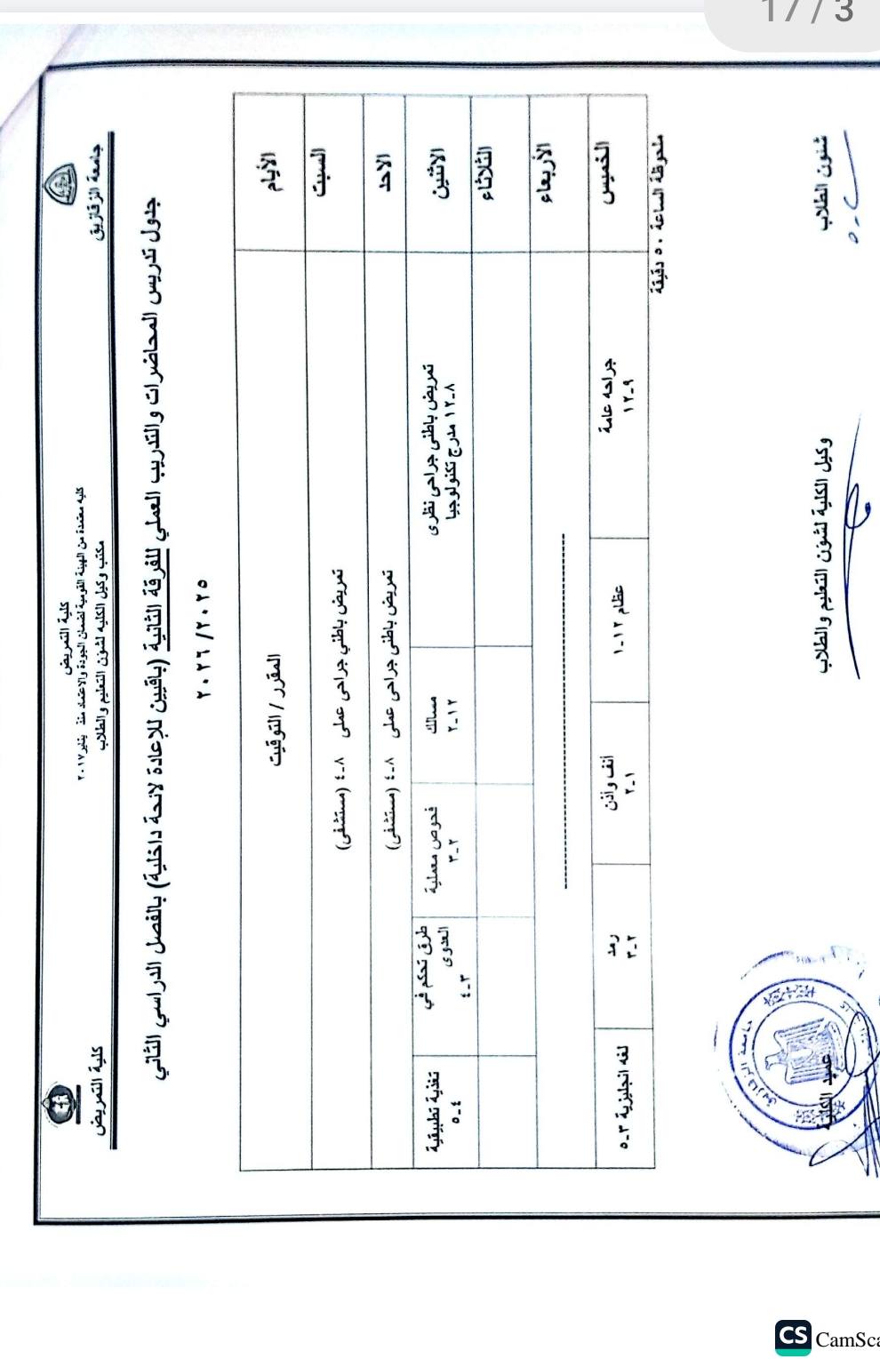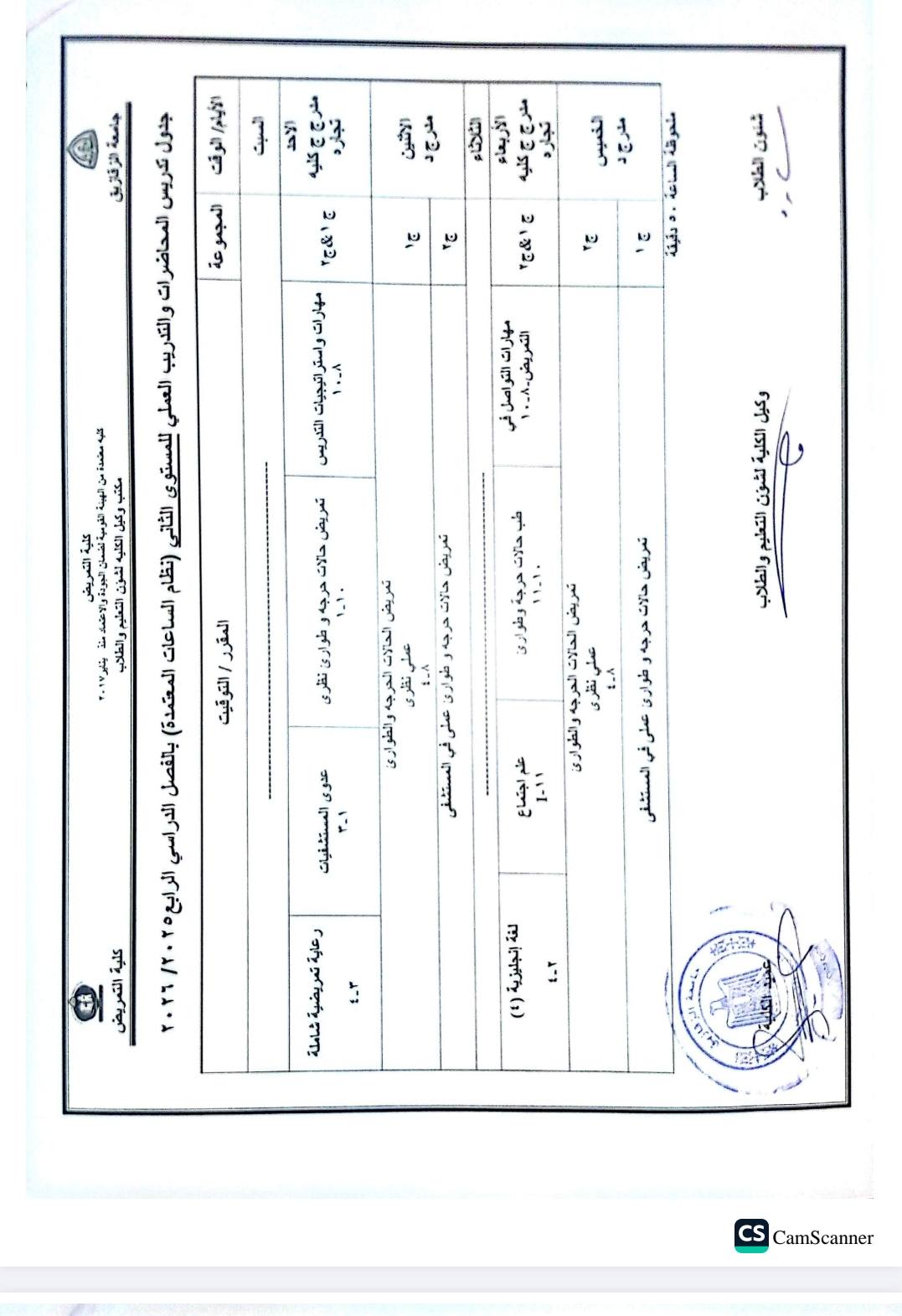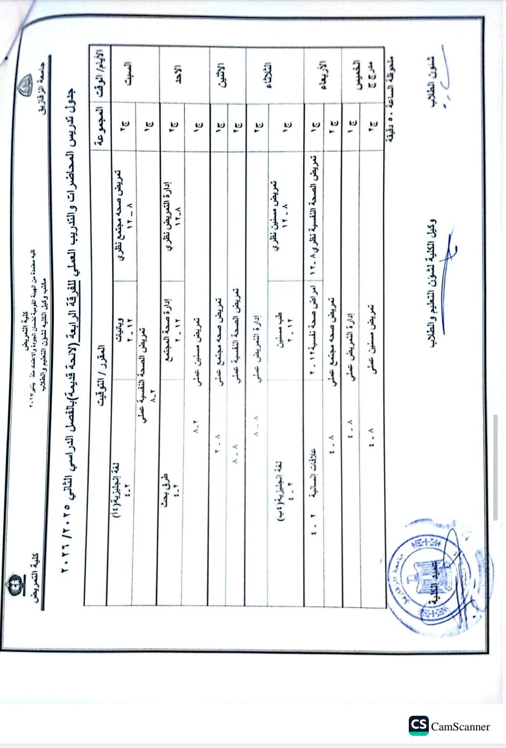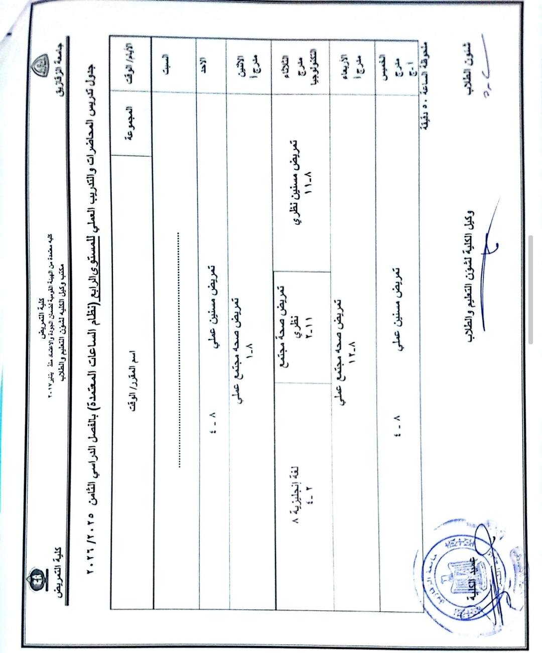 جدول محاضرات شئون تعليم (2025-2026)